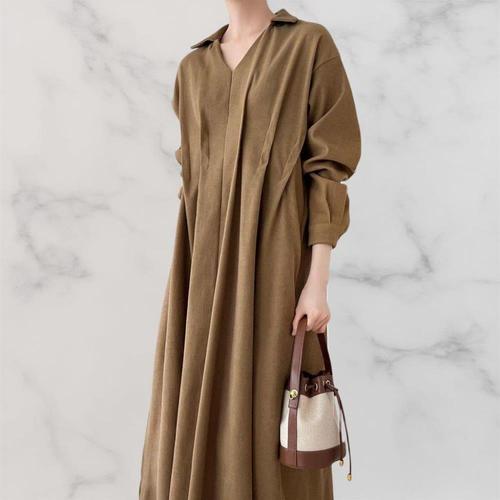 [다잇템]여성 V넥 카라 FW 들러리룩 핀턱 롱 드레스