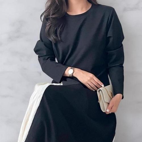 [다잇템][다잇템] 여성 들러리 패션 롱 색상 옆면 FW 콘트라스트 롱슬리브 리본 드레스_23026233_588872