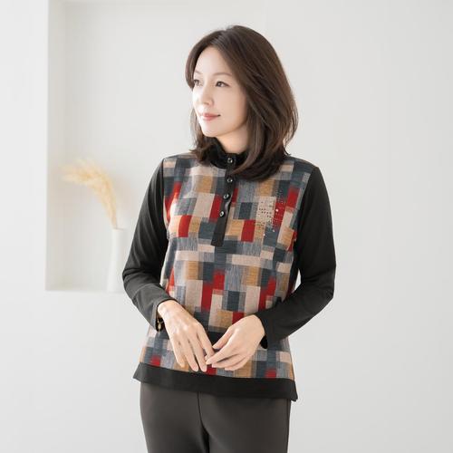 엄마옷 마담4060 뉴모자이크카라티셔츠-QTE2511046-