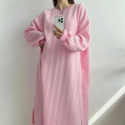 옷자락 / 여성 꽈배기 루즈핏 겨울 등원룩 포켓 잠옷 롱드레스