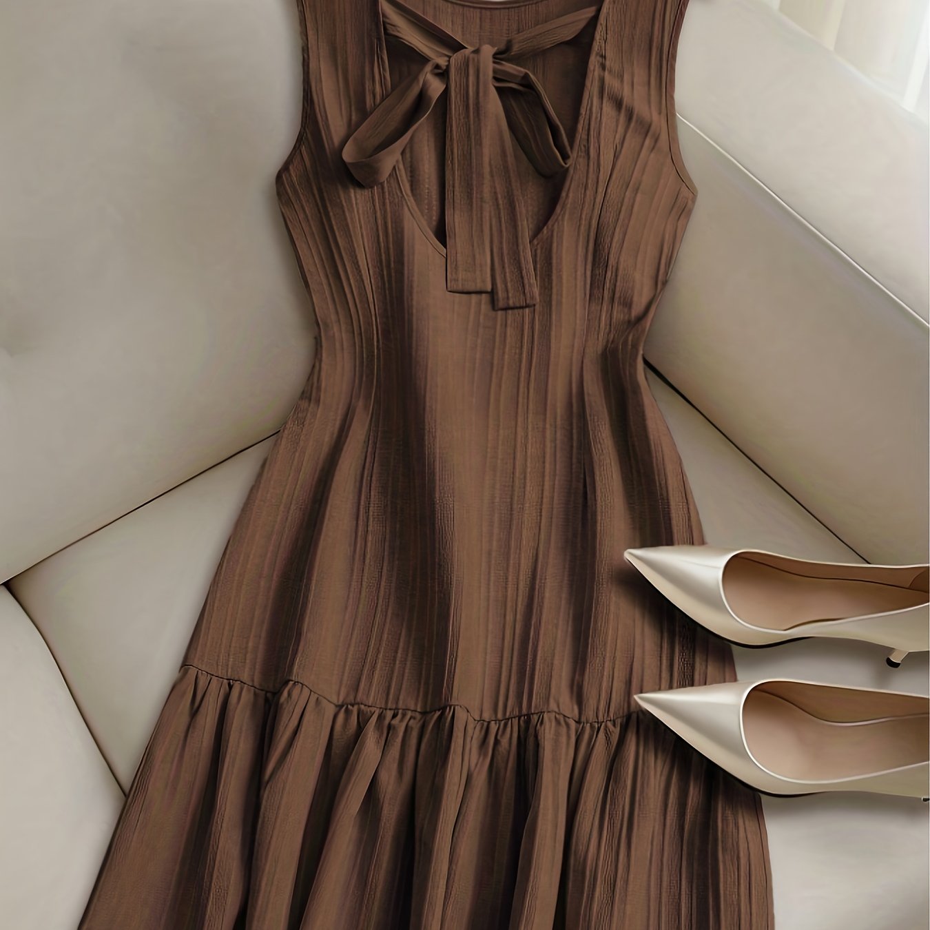 TEMU 셀프 디자인 여성용 봄/여름 백리스 타이스트랩 민소매 A라인 러플 밑단 캐주얼 미니 드레스, 여성 캐주얼 엘레강스 드레스, 홈파티 프리 여성 드레스