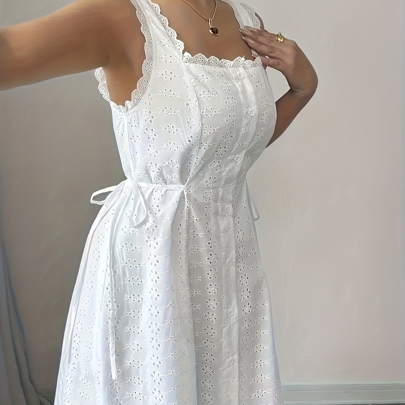 TEMU 여름 우아한 단색 자수 스퀘어넥 민소매 화이트 여름 휴가 드레스