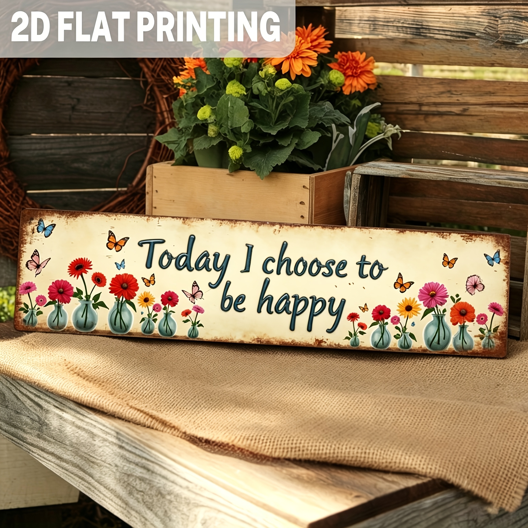 TEMU 2D 플랫 - 2D 평면, 1개 영감을 주는 "오늘 나는 행복을 선택한다" 금속 간판, 꽃과 나비 디자인 - 실내/외용 러스틱 빈티지 벽 장식, 3.93X15.74인치, 침실, 거실, 농가, 사무실에 적합