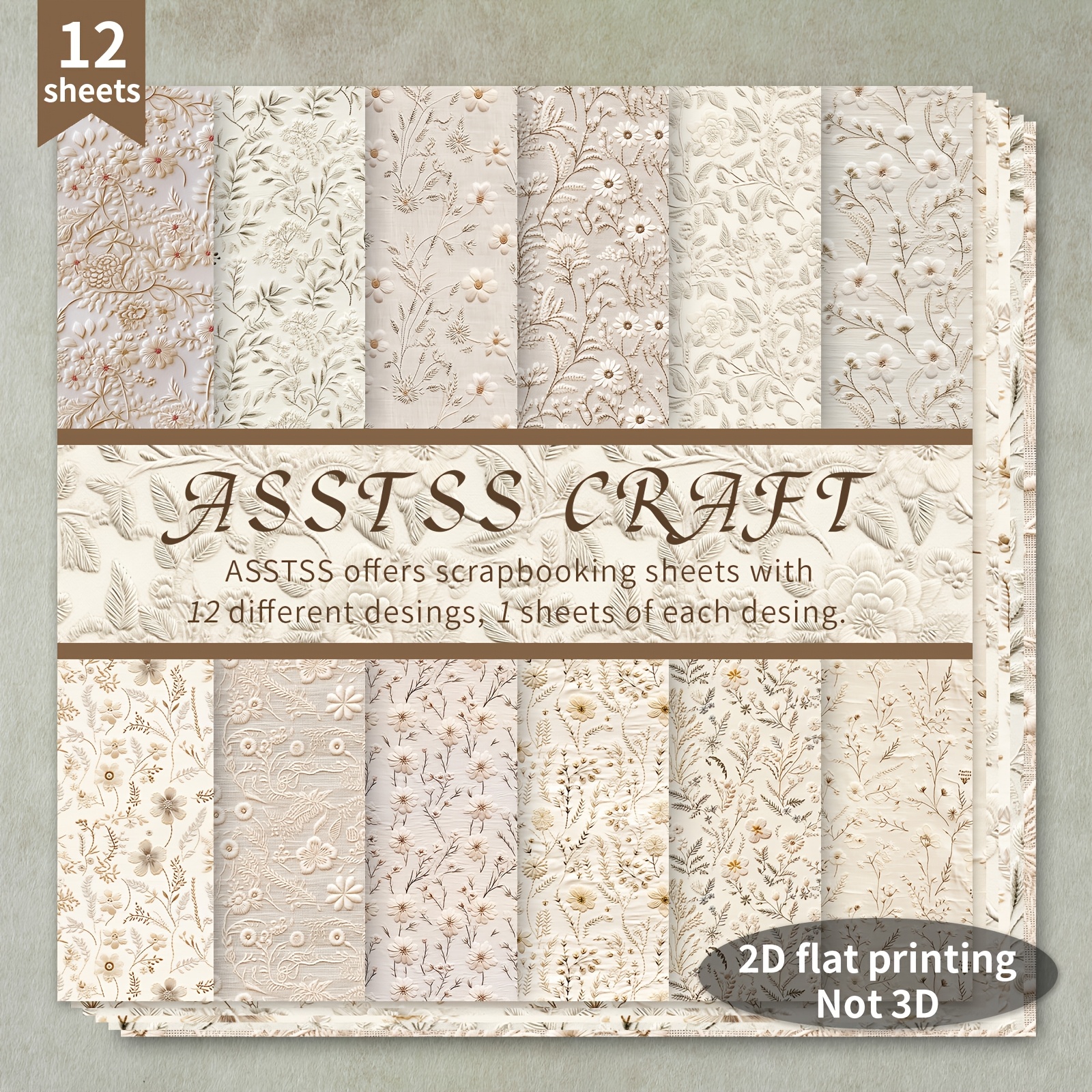 TEMU 12장 빈티지 꽃 자수 스크랩북 종이 패드 - 무게감 있는 6x6인치 카드스톡, 불릿 저널링, 인사말 카드, 콜라주 예술 및 공예용 독특한 디자인 12종