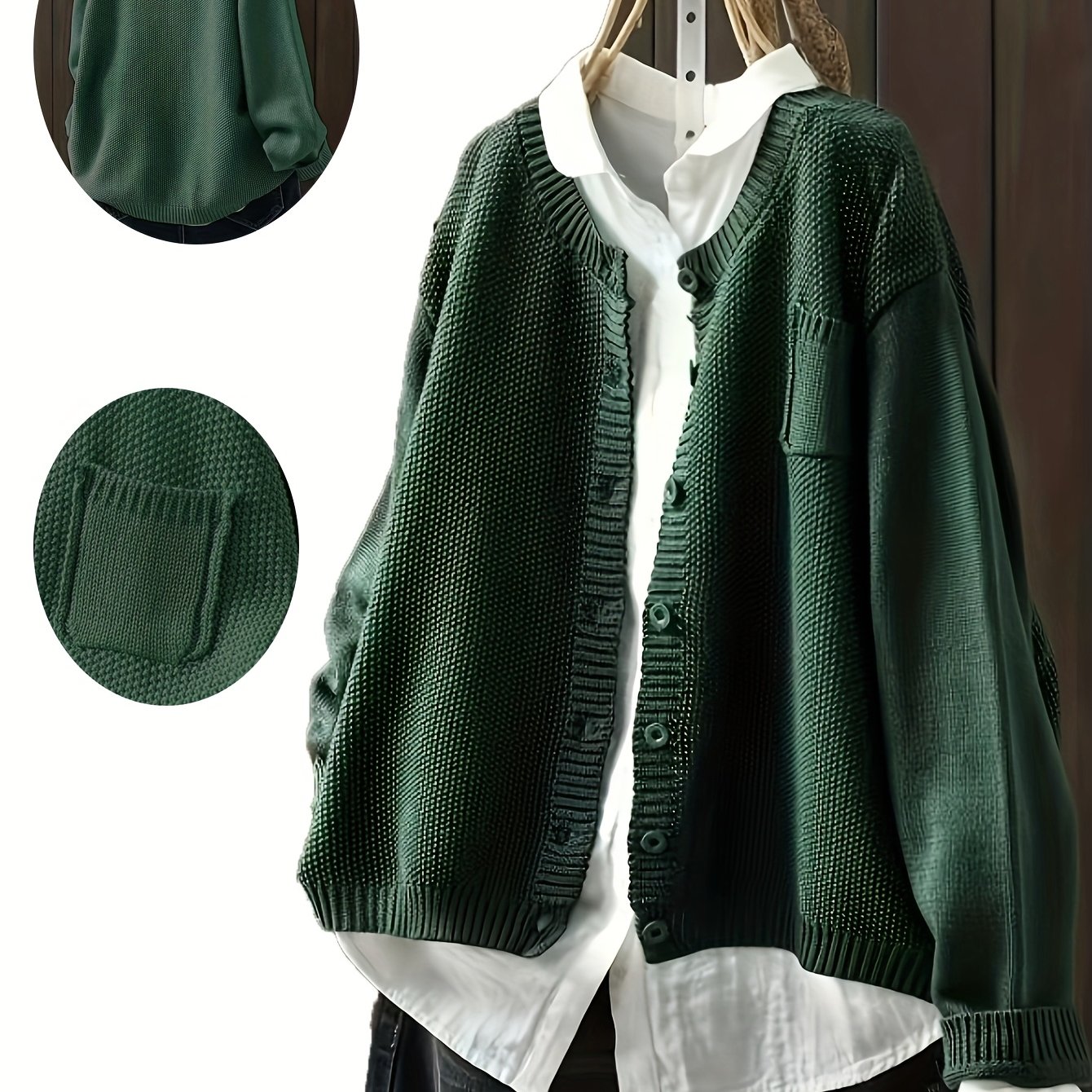 TEMU JNQualytrix 여성용 빈티지 스타일 케이블 카디건 - 옐로우 루즈핏 긴팔 스웨터 코트, 버튼 프론트 & 라운드 넥이 있는 편안한 가을 겨울 니트웨어, 손세탁/드라이클리닝 가능, 캐주얼 레이어링 피스, 아르티산 텍스처