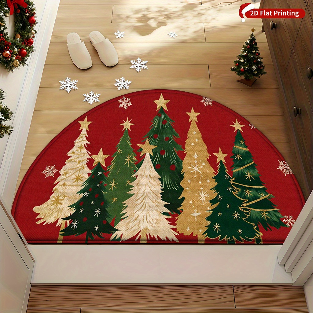 TEMU 크리스마스 트리 매트 - 플러시 반원형 미끄럼 방지, 부드러운 플란넬 느낌, 세탁 가능 & 접이식 매트 /야외 입구용, 그린 & 골든 크리스마스 장식 (애완동물 친화적), 2D 평면