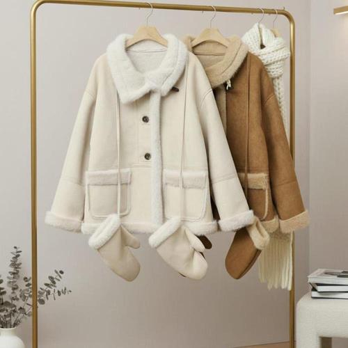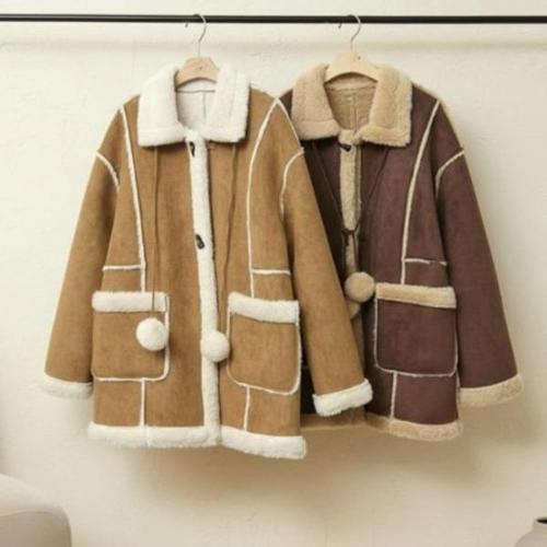 [옷자락]여성 떡볶이 단추 포인트 후리스 스타일 무스탕 양면 자켓