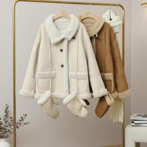 [다잇템]여자 무스탕 떡볶이단추 벙어리장갑 자켓