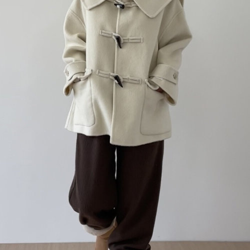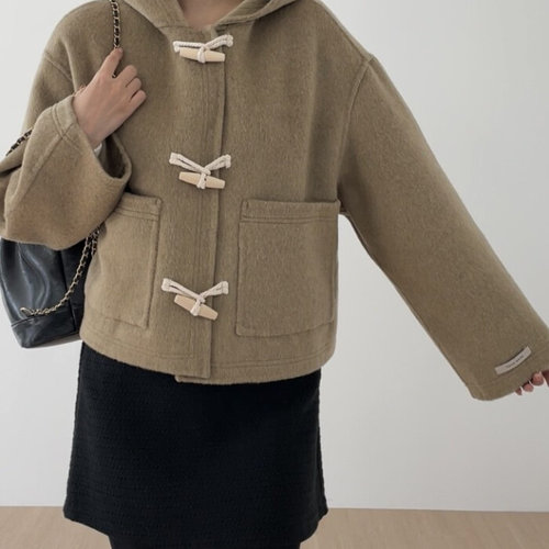 떡볶이코트 뿔단추 후드 모직 핸드메이드 반코트 남여공용 커플 학생 교복 자켓 더플 TS707