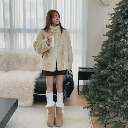 [제이0]부클 떡볶이 양털 무스탕 코트