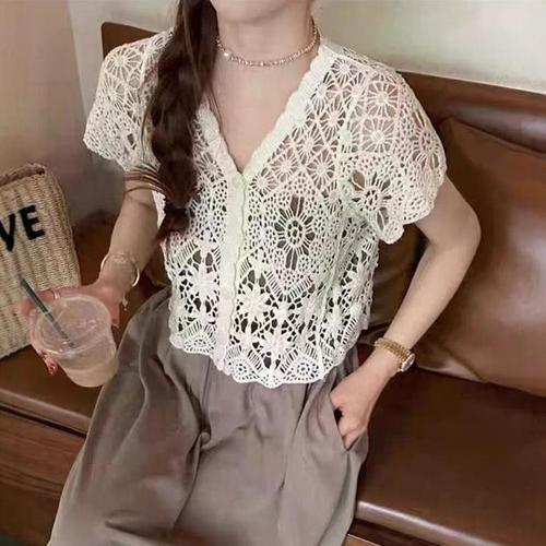 [라일리여성의류] Rly WL 여성 크로쉐 뜨개 반팔 브이넥 여름 가디건