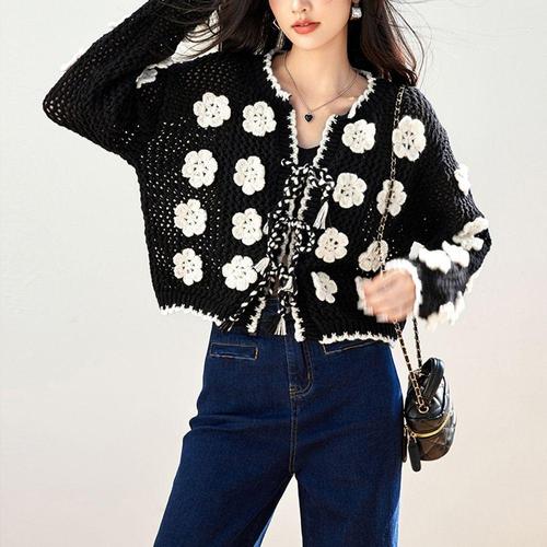 [다잇템_패션]여성 뜨개 키치룩 스웨터 크로셰 V넥 가디건