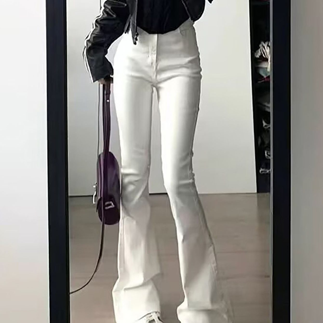 TEMU 여성 여름 패션 통근 하이웨스트 스판 슬림핏 날씬해 보이는 부츠컷 청바지 데일리 캐주얼 화이트 데님 플레어 팬츠 슬림소녀 SLIM GIRL