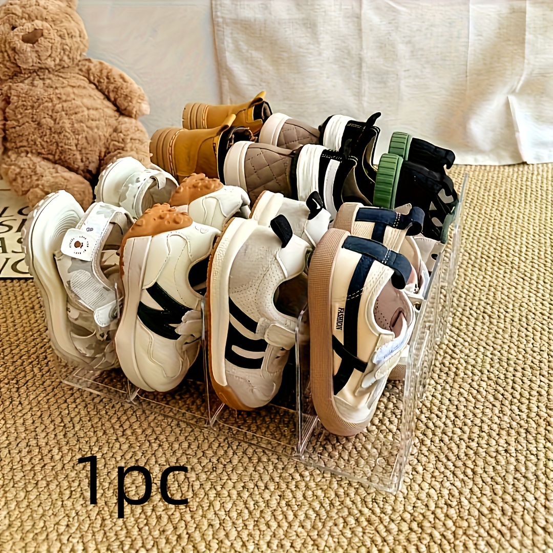 TEMU 투명 플라스틱 신발 정리대 - 조립 불필요 공간 절약형 다단 바닥형 신발장, 현관, 옷장 및 가정 정리를 위한 내구성 있는 투명 수납 선반, 쉬운 시야 확보를 위한 레이어형 수납 시스템, 실용적인 수납 랙, 선반 라이너
