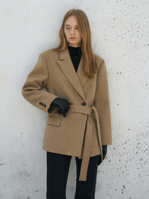 라메레이 알파카 벨티드 자켓 아우터 유진 착용 크림