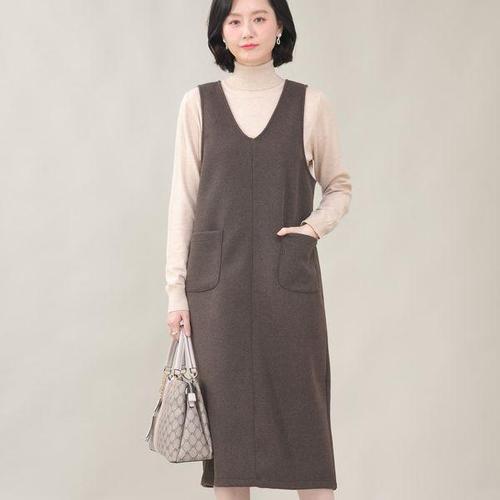 [애비뉴투지]엄마옷 도톰한 울터치 브이 여성 겨울 조끼 주머니 롱 원피스 K02416