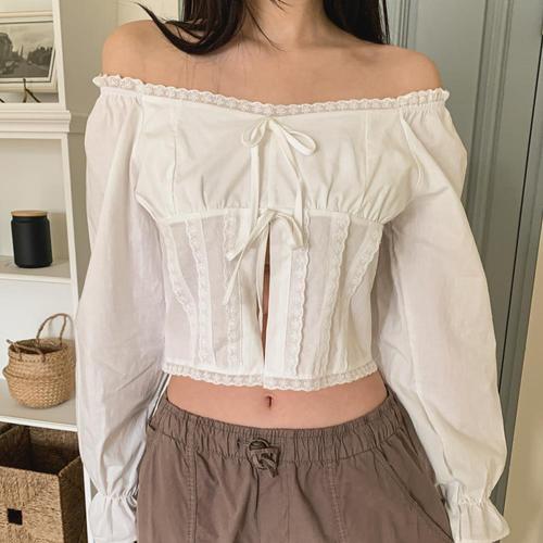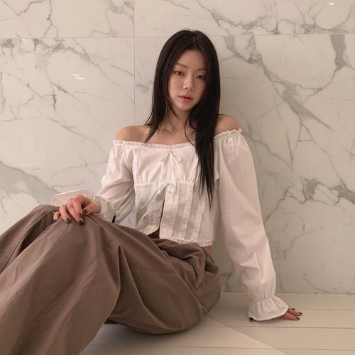[신상오픈런]여성용 봄 여름 오프숄더 크롭 블라우스 코튼
