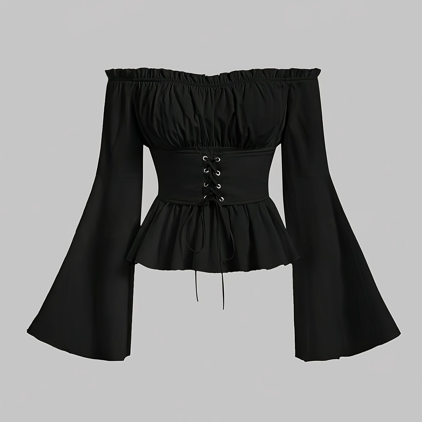 TEMU 여성용 단색 러플 디테일 오프숄더 플레어 소매 앞면 묶는 셔츠, 여성용 단색 홀터넥 슬림핏 긴소매 셔츠, Y2K 핫 패션, 활용도 높은, 심플, 클래식, 데일리, 캐주얼