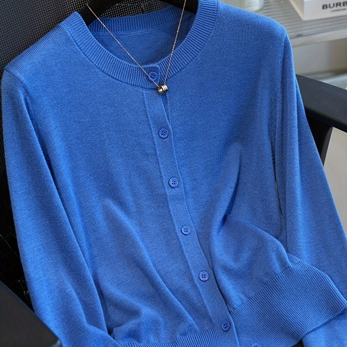 TEMU 여성용 우아한 캐주얼 가디건 스웨터 - 라운드 넥 긴 소매 버튼 프론트, 단색 사계절용 다재다능 탑, 부드럽고 내구성 있는 원단으로 캐주얼 & 포멀웨어, 엘레강스 스페셜 컬렉션, 일상 편안 착용감, 버튼업 디자인|가디건