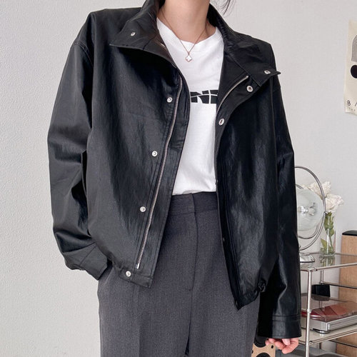 [다잇템] 여자 카라넥 가죽 힙무드 버튼 빅사이즈 자켓