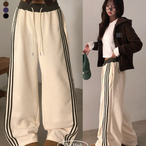 [신상오픈런]여성용 캐주얼 사이드라인 와이드 팬츠 밴딩 트랙 바지
