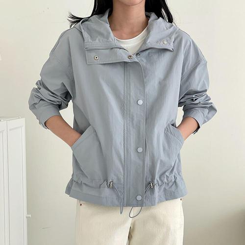 [옷자락] 여자 소라점퍼 스트링 후드집업 나일론 홑겹 봄 점퍼