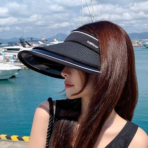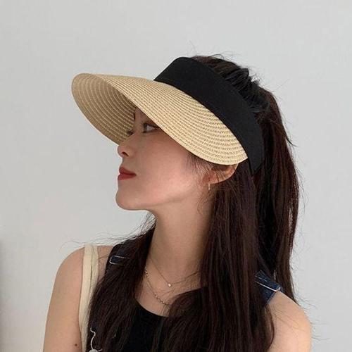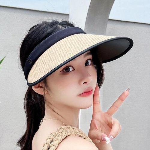 [에이치플러스몰]여름선캡 돌돌이모자 챙넓은캡모자 접이식여자캡 라탄밀짚 자외선차단모자 돌돌이썬캡 ..