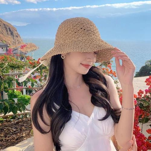 유유라키 여름 와이어 밀짚 라탄 버킷햇 모자