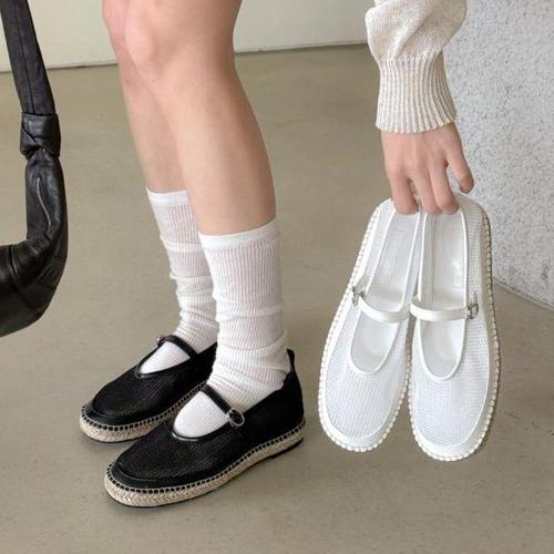 [신상오픈런]여성용 통기성 메리제인 라탄 플랫 슈즈