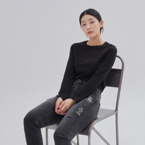 [엠클로]디스트로이드 라텍스 컷팅 크롭 스판 9부데님 청바지