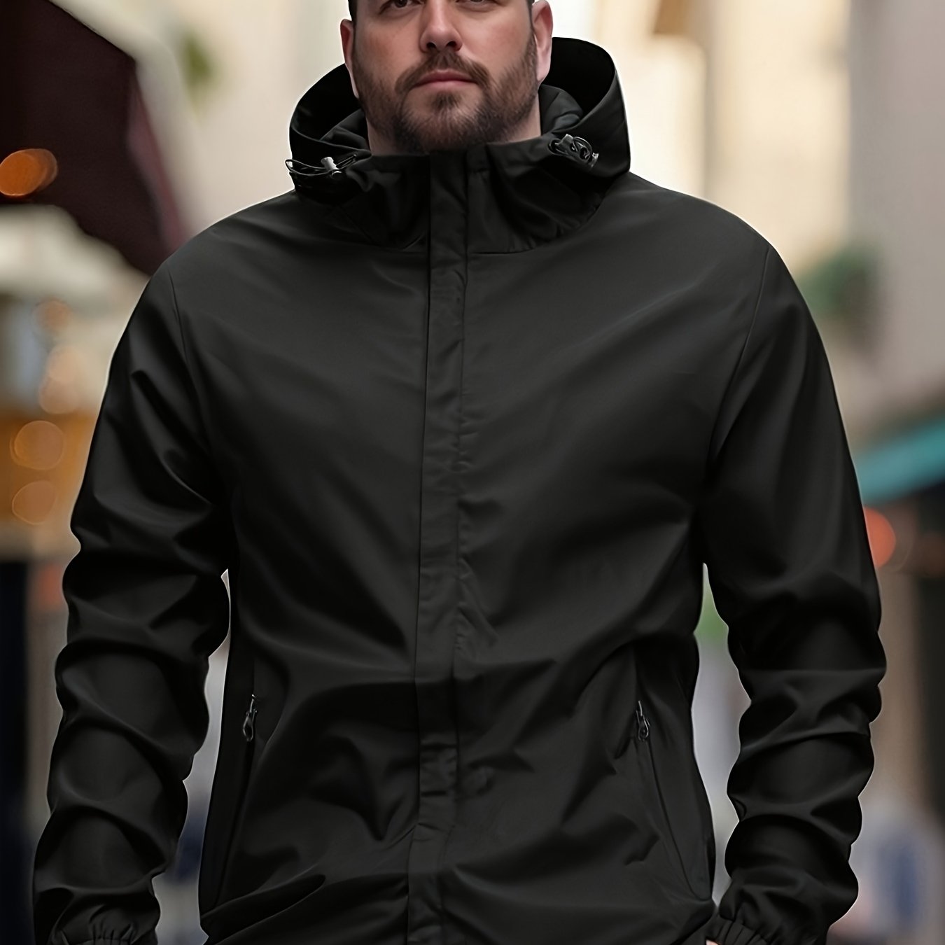 TEMU 신상 플러스 사이즈 남성용 봄가을 재킷, 트렌디한 캐주얼 작업복 스타일, 지퍼 포켓과 후드 디자인, 야외 캠핑 및 기타 활동에 이상적, 플러스 사이즈