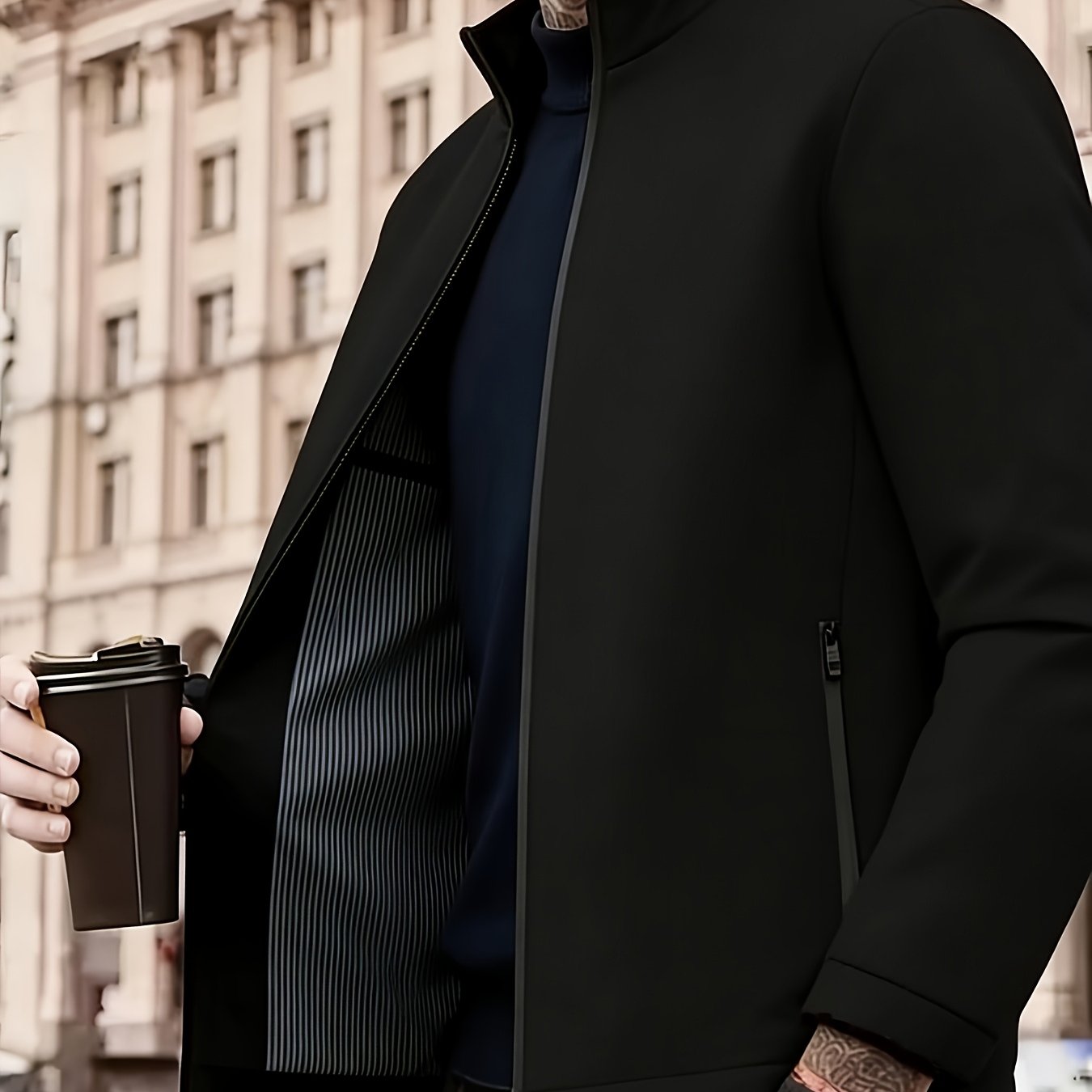 TEMU 남성 겨울 캐주얼 재킷, 스탠드 칼라, 커프스 스탠드 칼라, 클래식 패션 스타일 코트 남성 재킷