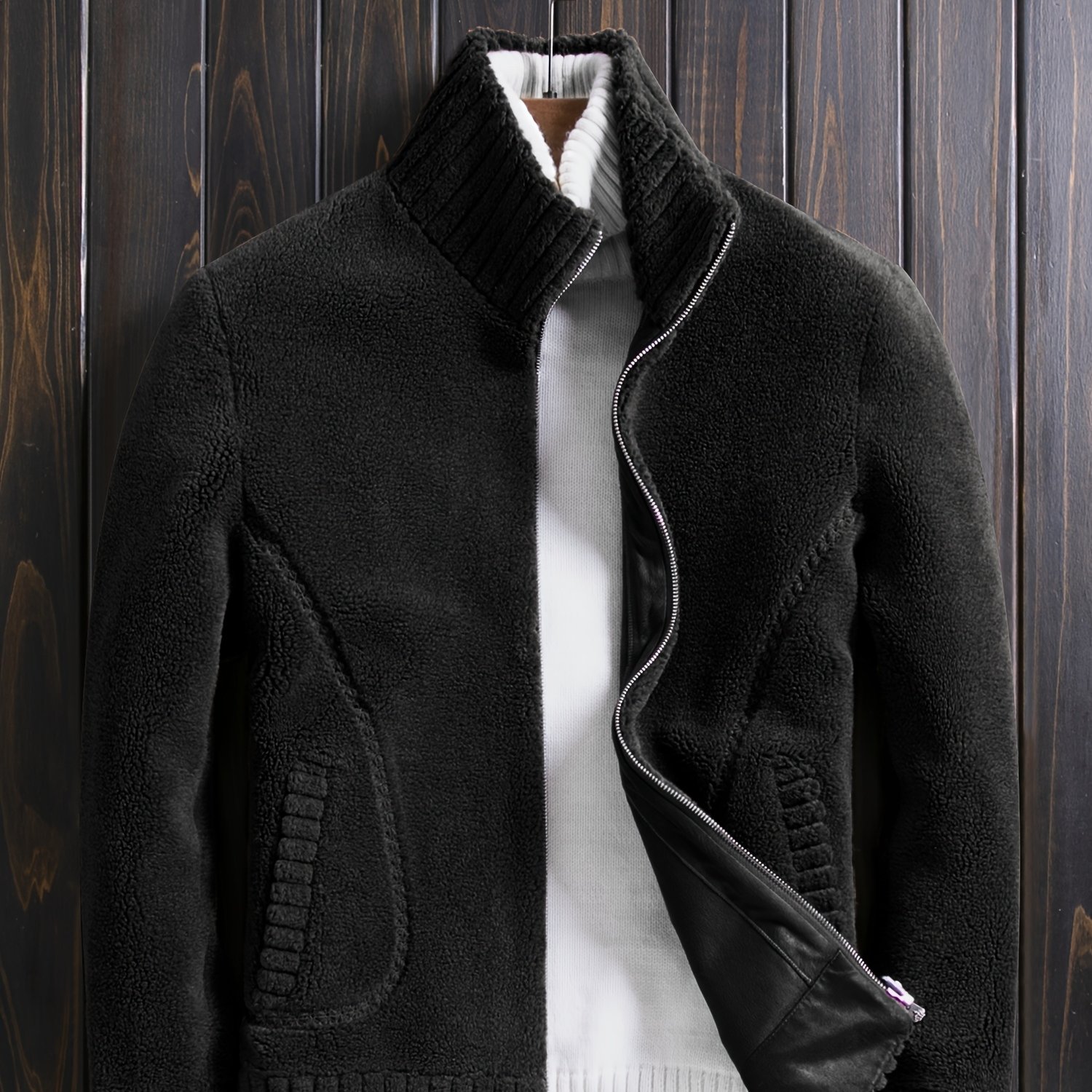 TEMU 두꺼운 보온 리버서블 칼라 재킷, 남성용 입자 울, 가을 겨울용