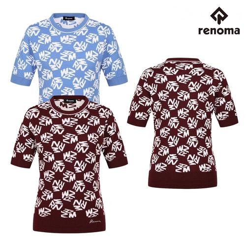 레노마골프 여성 가을 패턴 자가드 울혼방 반팔 니트 RWSRO.7202