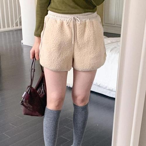 [옷자락] 여성 랍빠 퍼지 겨울 숏팬츠 배색 밴딩 3부 반바지
