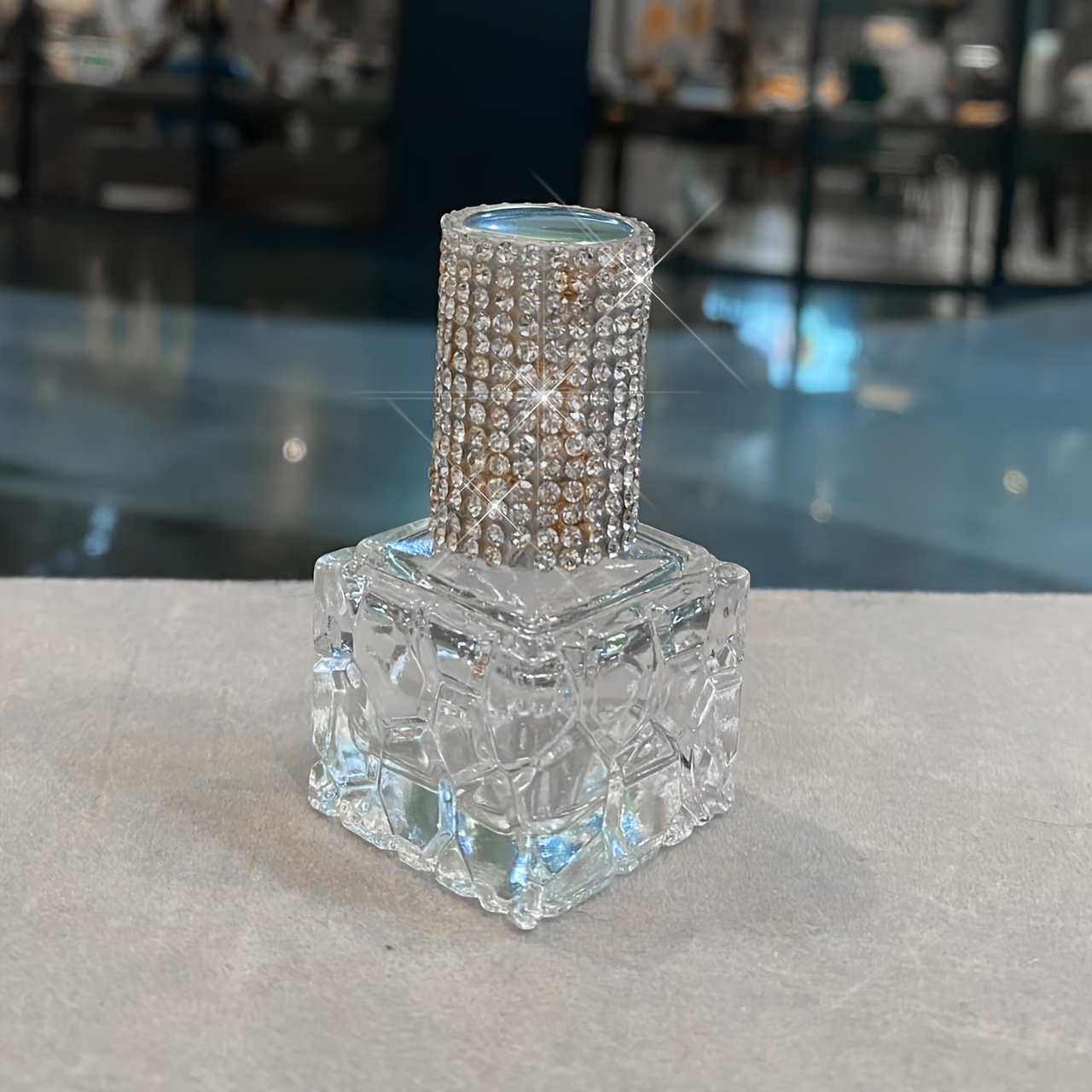 TEMU 1개 럭셔리 라인스톤 장식 향수 스프레이 병 - 반짝이는 PVC 프리 리필 가능 아토마이저, 여성을 위한 우아한 선물, 코롱 및 에센셜 오일용 패션 프래그런스 액세서리, 메탈릭 캡 | 라인스톤 장식