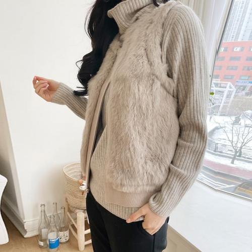 여자 겨울 아우터 래빗 인조퍼 집업 베스트