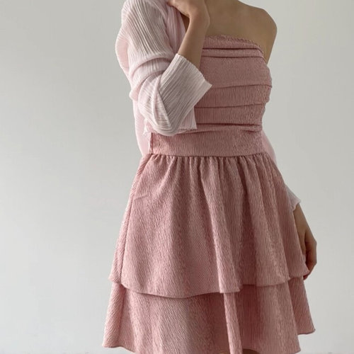 클루이가넷 / 여름 파티룩 튜브탑 핑크 프릴 원피스