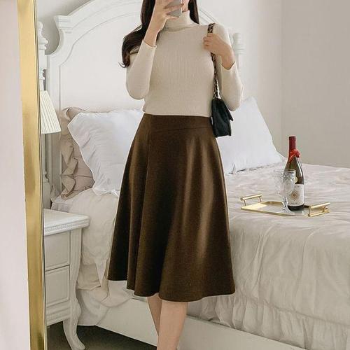 [옷자락] 여자 A라인 페이크랩 플레어 하객룩 겨울 미디 스커트
