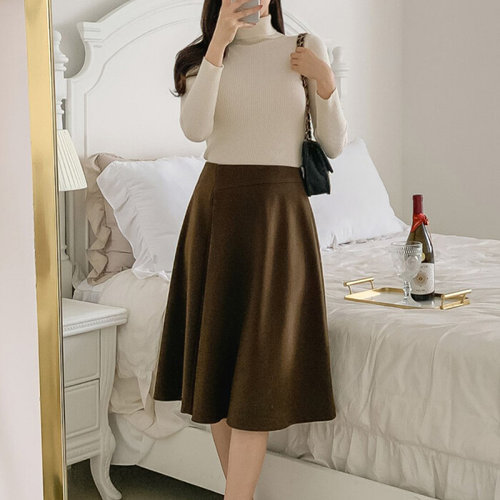 [옷자락]여자 A라인 페이크랩 플레어 하객룩 겨울 미디 스커트