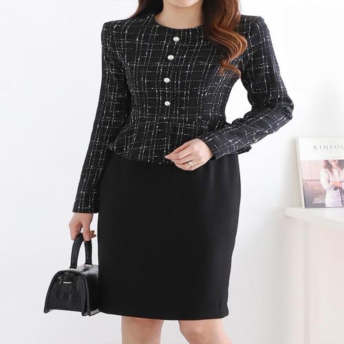 [모리스커밍홈][55-77]럭셔리 트위드배색 페플럼 원피스_M2410OP174D_R