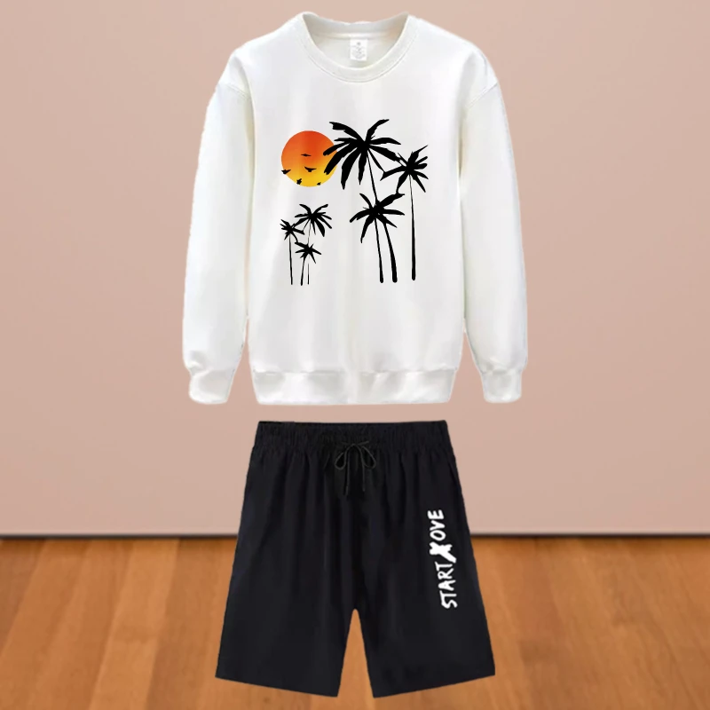 남성용 세트 가을 빠른 건조 석양 야자수 프린트 그래픽 티셔츠 수트 트랙수트 남성 디자이너 의류 긴팔 티셔츠