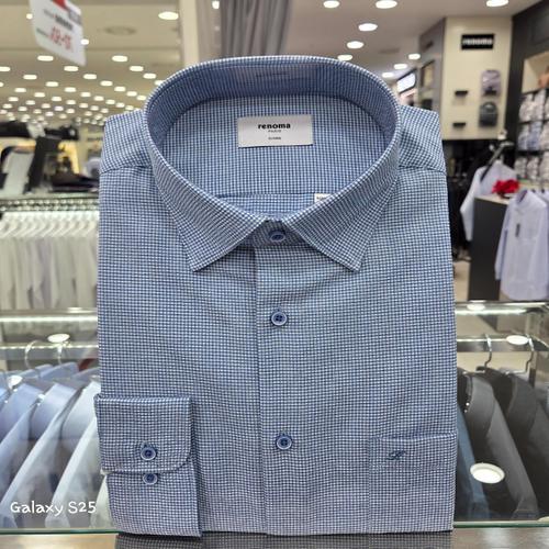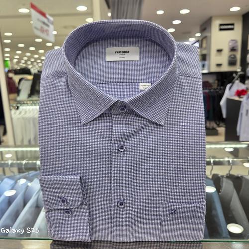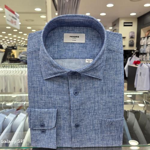 [레노마셔츠]타공 시어서커 잔체크 프린트 일반핏 긴소매RQSSG1435BU_GN