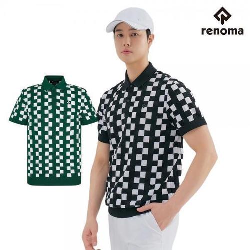 [레노마골프]남성 빗살 패턴 자가드 카라 반팔 티셔츠 RMTPM2112-403_IC