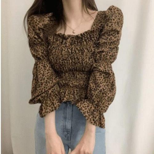 호피레오파드 사각넥 상의 올데이 WFJIXAW