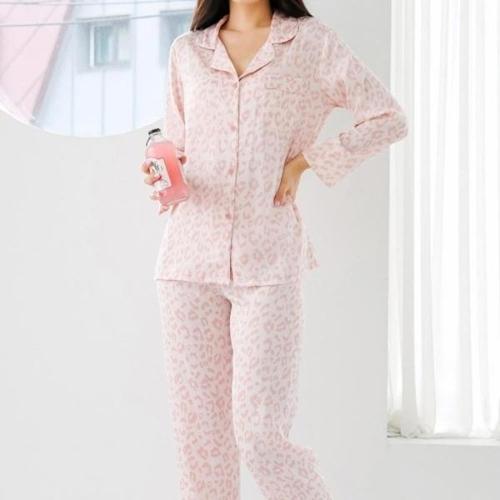 [신상오픈런]|CCD20B0|레오파드 패턴 파자마 트윈룩 투피스 바지 긴팔잠옷_18874716_597559