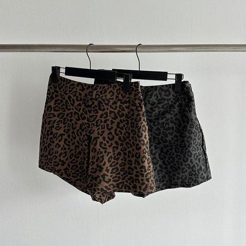 [신상오픈런]여성 레오파드 패턴 허리 A라인 면 미니스커트
