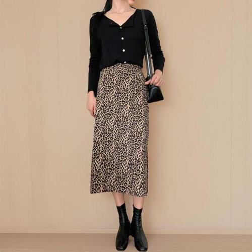 [신상오픈런]여자 유니크 레오파드 뒷밴딩 트임 롱 스커트