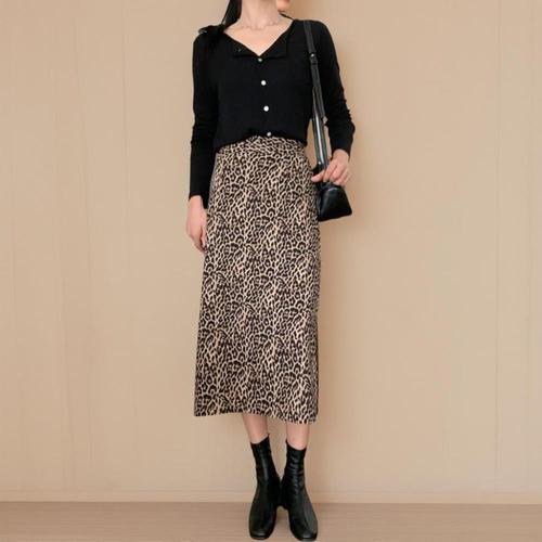 하늘바라기 여성용 호피 트임 롱 스커트
