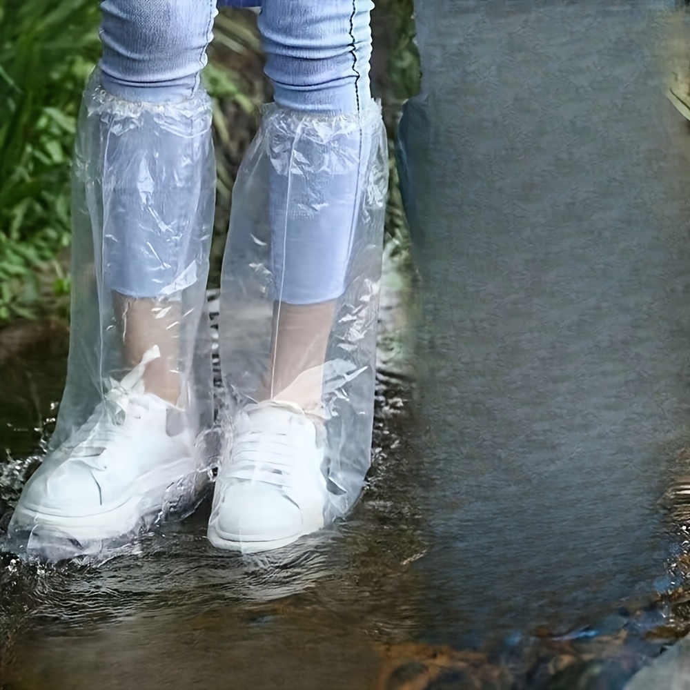 TEMU 12개 헤비듀티 투명 방수 부츠커버, 맑은 PVC 미끄럼 방지 신발 보호대 - 빗길/진흙/눈/건설/정원/농업/여행용 필수품. 쉽게 세척 가능한 소재의 고관목형 야외 착용식 두꺼운 PE 일회용 구두 덮개 (반지마)